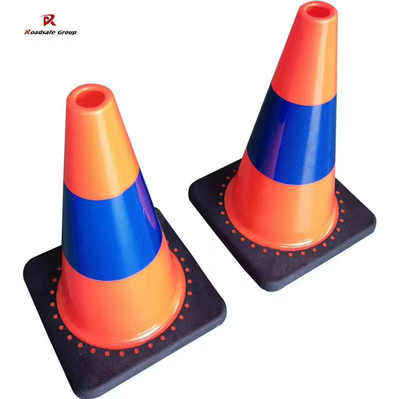 PVC โคเนสยืดหยุ่น ความสูง 45 ซม โคเนสเตือนถนนที่มีพื้นฐานสีดํา โคเนสจราจร