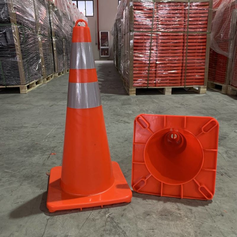 PVC คอนจราจร คอนความปลอดภัย ด้วยเทปสะท้อนแสง 70cm 28inch Orange เตือนคอน